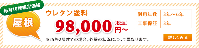 家の中でも屋根は太陽光や雨風に常にさらされているため、耐久性の高い弱溶剤シリコン塗料を使用しています。スレート屋根の場合は使用する屋根材によっても保証期間は変わってくるので、保証期間や内容に関しては担当スタッフまでお尋ね下さい。その他ご不明な点がある場合もお気軽にご質問下さい。